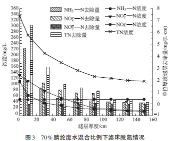 2.1.2 70%腈綸廢水混合比例時(shí)濾床脫氮情況