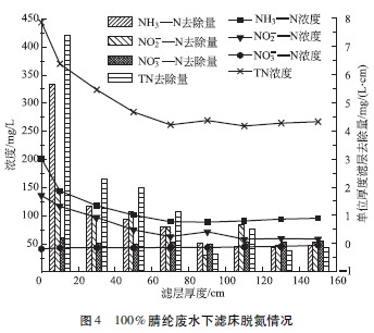 2.1.3 100%腈綸廢水時(shí)濾床脫氮情況
