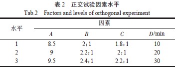 選取pH、n(Mg):n(N)、n(P):n(N)、反應時間,4個因素,分別記作A、B、C、D,設計4 因素3 水平正交試驗,表2 為因素水平表。