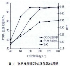 2.2.1鐵屑投加量對(duì)微電解處理效果的影響