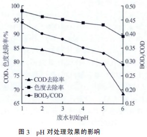 2.2.3廢水初始pH 對(duì)微電解效果的影響