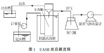 實(shí)驗(yàn)采用自行設(shè)計(jì)的升流式厭氧污泥床反應(yīng)器(UASB)。UASB 反應(yīng)器流程如圖1 所示。