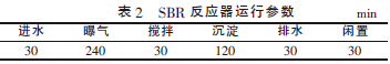 筆者研究采用PLC 自動(dòng)控制系統(tǒng)控制SBR 反應(yīng)器運(yùn)行,SBR反應(yīng)器的運(yùn)行參數(shù)如表2 所示。