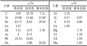 表3 鐵、炭及絮體表面EDS 元素分析結果