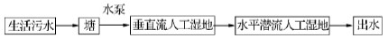 生活污水 經(jīng)排水管網(wǎng)進入文化廣場邊上的池塘(30m×30m×1.5m)。在池塘里構建植物浮床,并且養(yǎng)魚,將其改造成生物塘。并且引入一些自流的山泉水用于稀釋污水。植物浮床(2.5m×2.5m)上種植美人蕉、水通菜、西洋菜。養(yǎng)殖鯽魚、鯉魚。污水通過生物塘的處理后,由潛水泵抽到人工濕地深度處理。