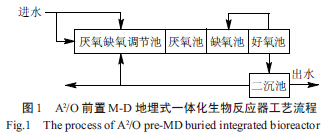 其中,A2/O 前置M-D 地埋式一體化生物反應器流程見圖1。