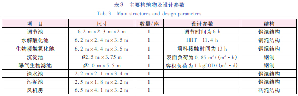 主要構筑物及設計參數見表3。
