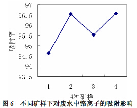 從圖6可以看出一次溢流的吸附效果最好,超細(xì)礦粉的次之。具體參見http://www.bnynw.com更多相關(guān)技術(shù)文檔。
