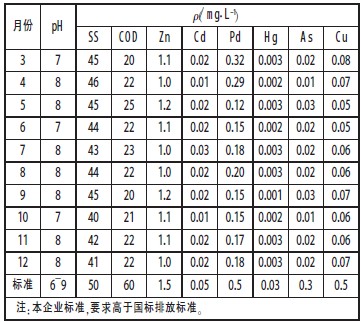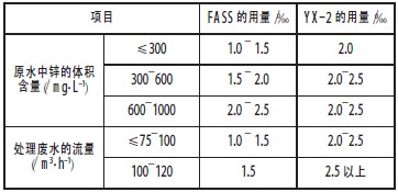 在現有污水處理設備的基礎上,采用石灰中和后,在一段反應箱中采用添加的FASS 無機復合凈水劑與的“高效多功能YX-2 型混凝劑”相結合的方式,在污水流量、重金屬里穩定可控情況下,能有效地將廢水中的鋅殘余含量降低至1.5 mg/L 以下,鎘0.05 mg/L 以下,出水水質清徹透明,無異色,處理后的水既可回用,且不對生產造成影響,也可完全達到國家環保部于2010 年9月發布的“鉛、鋅工業污染物排放標準”(GB 25466—2010)的規定。