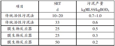 表1 膜生物反應器的污泥產率與傳統活性污泥法數據比較表
