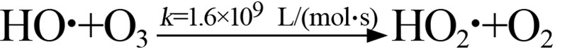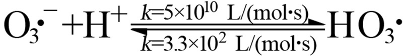 從式(1)~式(6)可見,臭氧在水中的分解主要是OH-引發(fā)生成·OH等自由基活性基團(tuán),然后·OH與水中有機(jī)物發(fā)生無選擇性反應(yīng),具有非常高的反應(yīng)速率常數(shù)〔通常為107~109 L/(mol·s)〕。同時(shí)從式(1)可以看出,OH-與臭氧分子的反應(yīng)速率常數(shù)最低,為70±7 L/(mol·s),這說明OH-對臭氧分解產(chǎn)生自由基的反應(yīng)起決定性作用。