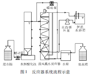 接種好氧活性污泥取自大連凌水河污水處理廠,用于培養亞硝化污泥,接種污泥懸浮顆粒濃度為3 000 mg/L;填料上接種的反硝化菌與ANAMMOX菌種取自本實驗室,其中厭氧氨氧化活性為30mmol/(g·d)。