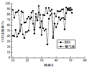 圖4 BES 和曝氣池COD 去除率變化曲線