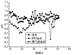 Fig.5 pH Changes of influent and effluent of the BES and the aerobic system