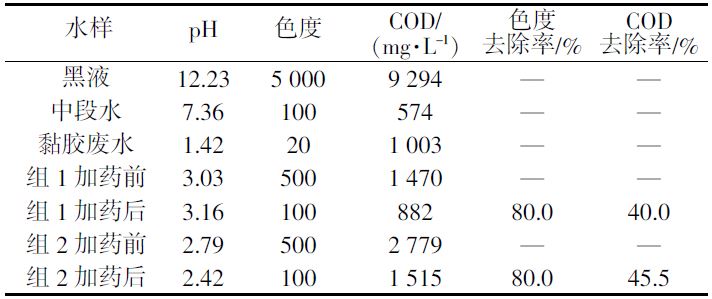 黑液臭味濃、堿性大、色度高、COD高且難降解,其COD為9 000~21 800 mg/L,pH為12~14;中段水COD低,范圍在500~1 000 mg/L,偏弱酸性或中性;而黏膠廢水COD較中段水高,范圍在1 000~1 300 mg/L,強(qiáng)酸性,pH為1~2。