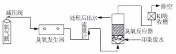 試驗采用圖1 所示工藝流程。其中臭氧反應器為自制管式玻璃反應器,其管徑58 mm,有效高度500 mm,采用鈦合金微孔布氣曝氣頭布氣。