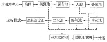 養豬廢水含有高濃度的有機物、懸浮物、氨氮等污染物,其水質和水量受到生產工藝季節及產品因素的影響較大,因此須選擇耐沖擊負荷強的工藝。其廢水屬于可生化性一般的廢水,常采用生物處理方法,該方法的運行費用較低,處理效果穩定,其主要原理是利用生物系統中的微生物(包括細菌、真菌、原生動物和后生動物)的代謝及吸附作用,降解廢水中的有機以及無機污染物質。
