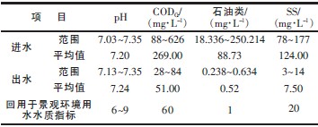(2)工程運(yùn)行3 a多來(lái),處理效果穩(wěn)定,處理后水回用于沖刷地面、洗車(chē)、綠化、景觀(guān)用水等用途,創(chuàng)造了顯著的經(jīng)濟(jì)效益和環(huán)境效益。