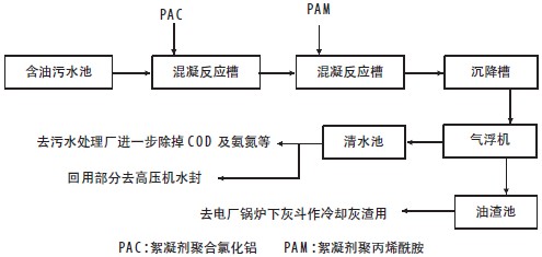 廣西柳州化工股份公司合成分廠,僅氫氮壓縮機(jī)就有18 臺(tái),滿負(fù)荷生產(chǎn)時(shí)每小時(shí)產(chǎn)生約25m3的含油污水,在氣浮凈水裝置投用以前,含油污水只是簡單地處理后外排,不僅造成了水資源浪費(fèi),同時(shí)也污染了受納水體。油類污染物成分復(fù)雜、且含量較高,經(jīng)過多次比較,實(shí)施了氣浮凈化水技術(shù)的處理工藝,取得了良好效果,為污水處理廠進(jìn)一步凈水提供良好的條件。