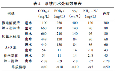 污水處理系統經三個月的調試,達到設計指標。系統污水處理效果見表4。