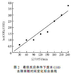 (3)表觀動力學研究表明,電解輔助Fe2+活化Na2S2O8工藝處理屠宰廢水COD 降解符合一級反應動力學,反應條件下,其速率常數k 為0.014 min-1。