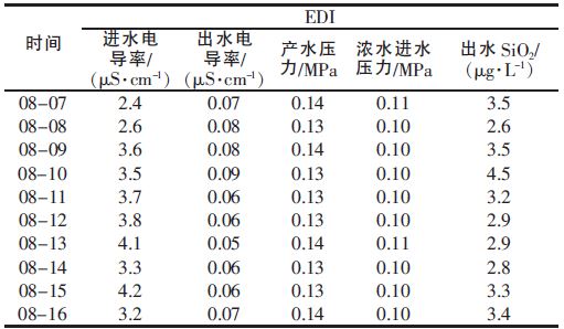 由表 4 可見,EDI 系統出水電導率≤0.10 μS/cm,SiO2≤5 μg/L。由運行結果可見,全膜法水處理技術出水完全能滿足電廠鍋爐補給水水質的要求。