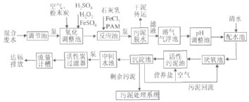 1999 年公司建起一套污水處理設(shè)施,工藝流程:混合高濃度廢水→調(diào)節(jié)池→多級反應(yīng)池→氣浮池→厭氧池→配水池→生物接觸氧化池→生化沉淀池→放流調(diào)整池→計(jì)量排放。