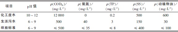 該項目設計處理能力為化工廢水120 m3/d 和生活污水20 m3/d,共計140 m3/d。增塑劑廢水具有pH 值高、有機物濃度高、水質復雜、難降解等特點[1-2],廢水中含有大量的對苯二甲酸和辛醇,對苯二甲酸濃度過高對生化系統有較強的抑制、毒害作用。