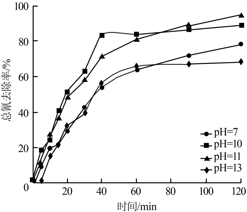 2.2 pH對UV-H2O2工藝除氰效果的影響