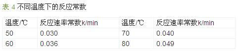 不同溫度下的反應(yīng)常數(shù)如表 4所示。