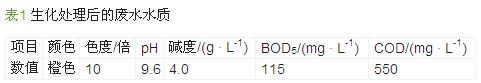 廢水來源:某企業丙烯酸及酯廢水經生化處理后的出水,水質情況見表 1。