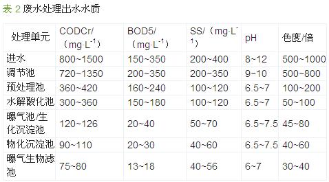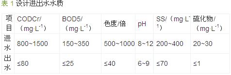 該印染廠對廢水處理要求較高,污水處理廠設計進出水水質見表 1。