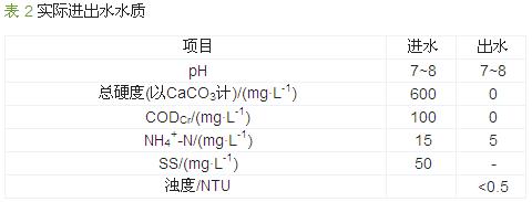 本回用水處理裝置已經(jīng)建成運行近1 a,其水質(zhì)日常監(jiān)測結(jié)果如表 2所示。運行結(jié)果表明,出水穩(wěn)定,出水水質(zhì)達到《污水再生利用工程設(shè)計規(guī)范》(GB 50335—2002)中再生水用作循環(huán)冷卻系統(tǒng)補充水的水質(zhì)標(biāo)準。