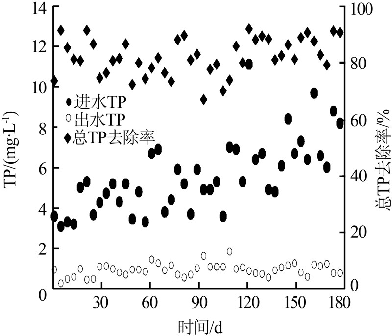 組合工藝運行期間,TP的去除情況如圖 3所示。