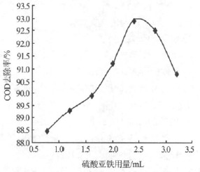 考察了硫酸亞鐵用量對COD 去除率的影響,結果見圖1。