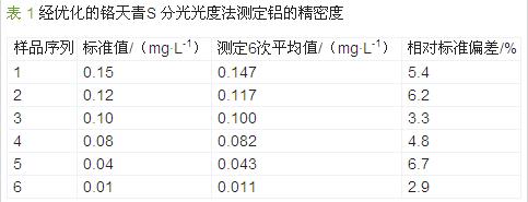 結果表明,采用優化后的鉻天青S 分光光度法測定鋁有較好的精密度。