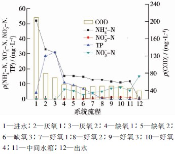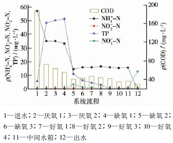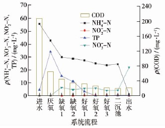 COD 采用COD 快速測定儀測定; NH4+-N 采用納氏試劑光度法測定; NO2--N 采用N-(1-萘基) -乙二胺光度法測定; NO 3--N采用麝香草酚分光光度法測定; ρ(MLSS) 采用濾紙稱重法測量; T、pH 和溶解氧(dissolved oxygen,DO) 采用WTW inolab level 2 在線監測儀測量.