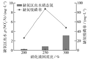 圖7 不同硝化液回流比缺氧區出水硝態氮與缺氧吸磷率的變化