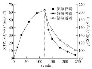 圖8 厭氧釋磷和好氧、缺氧吸磷試驗