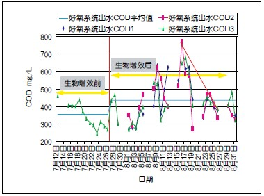 本次實驗驗證了對于在高負荷運行、出水不太理想狀況下的生化系統(tǒng),采用生物增效技術來提升生化系統(tǒng)的處理效率、降低后端處理費用是可行的。