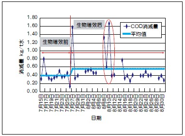 根據(jù)生物增效后COD消減量經(jīng)濟效益估計可知,在好氧段生物增效,系統(tǒng)的穩(wěn)定性改善之后,后段處理的加藥量會有明顯的下降。具體參見http://www.bnynw.com更多相關技術文檔。