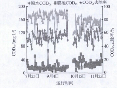 圖 2 MBR 系統生化部分對CODCr的去除效果