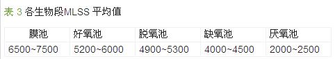運行過程中對各池污泥濃度進行了監測,并以此作為排泥依據。監測結果的平均值如表 3 所示。日排泥量為100~300 L,排泥點在膜池。