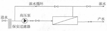 由于印染廢水的水質比常規水體差很多,所以反滲透系統的化學清洗周期相對短些,設計為2 個月左右。單級單段的設計,使反滲透系統在清洗時能夠保證膜清洗效率和效果。系統的進水電導率在回流后會增加很多,進水的滲透壓會升高,提高了泵的揚程,對比印染廢水的惡劣水質,是個優化的選擇。