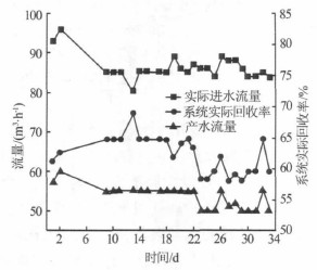 3.1 反滲透系統實際進出水流量和回收率的變化