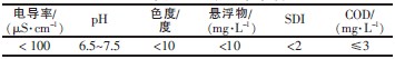 該印染廠印染廢水經污水站生化等工藝處理后,水質達到了DB 44/26—2001 標準,其水質:COD≤90 mg/L,BOD5≤20 mg/L,SS≤60 mg/L,色度≤40 度,電導率≤2 000 μS/cm, pH 為6~9。該印染廢水經反滲透工藝處理后,產水的水質需要達到國家再生水水質標準SL 3682006 中工藝用水的水質要求。