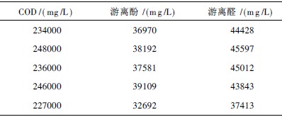 廢水來源于浙江嘉民塑膠有限公司酚醛樹脂生產廢水,原水CODcr 為200000 ~250000mg /L,苯酚含量為30000 ~55000mg /L,甲醛含量為40000~60000m g /L,pH 為1. 5~1. 7。