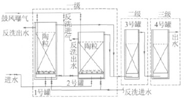 (2)由于反沖洗出水水質(zhì)無法達(dá)到排放標(biāo)準(zhǔn)的要求,應(yīng)將其排放到調(diào)節(jié)池重新處理。反沖洗周期約為15 d。