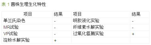 經過分離純化,共得到3 株具有較強降酚能力的菌株。經過進一步篩選,確定其中一株具有較高的苯酚降解效率。該菌株在富集培養基上生長,菌落表面光滑,呈圓形凸起,質地濕潤,邊緣整齊,呈紅色。其生理生化特性如表 1 所示。初步確定該菌種為沙雷氏菌屬〔7〕。后續實驗均以該菌株為研究對象。
