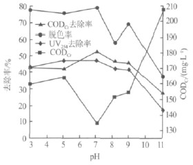 CODCr采用重鉻酸鉀法測定,UV254采用紫外分光光度法測定,色度用鉑鈷標準比色法測定。
